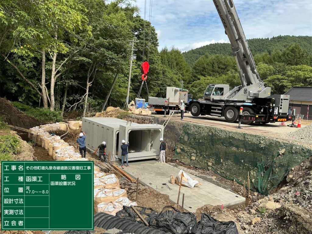 町道丸泉寺線災害復旧いたしました! 2025年12月23日 最終更新日時 : 2025年12月23日 八戸建設スタッフ 着工前 DCP PHOTO DCP PHOTO 崩れた道路にブロックを積みました! Exif_JPEG_PICTURE 流されたコルゲート管をボックスカルバートに変えました! DCP PHOTO DCP PHOTO 止水壁を施工して完成です! DCP PHOTO 陥没した道路を作り直して DCP PHOTO 舗装します! DCP PHOTO 完成しました! DCP PHOTO 災害復旧もお手の物です!